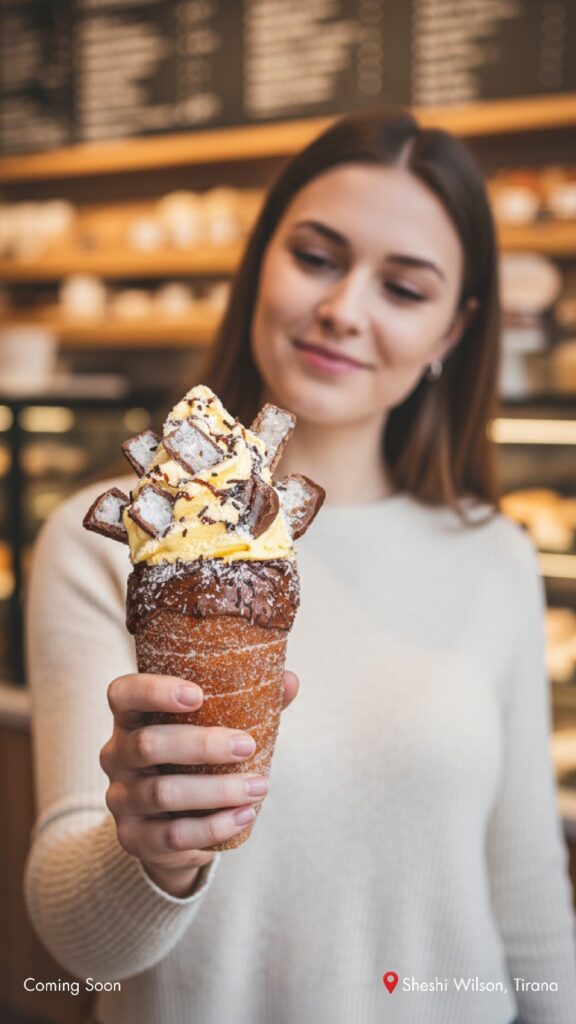 Frymëzimi vjen nga chimney cake, një recetë tradicionale hungareze që ngroh zemrën me aromë, teksturë dhe kujtime të ëmbla.